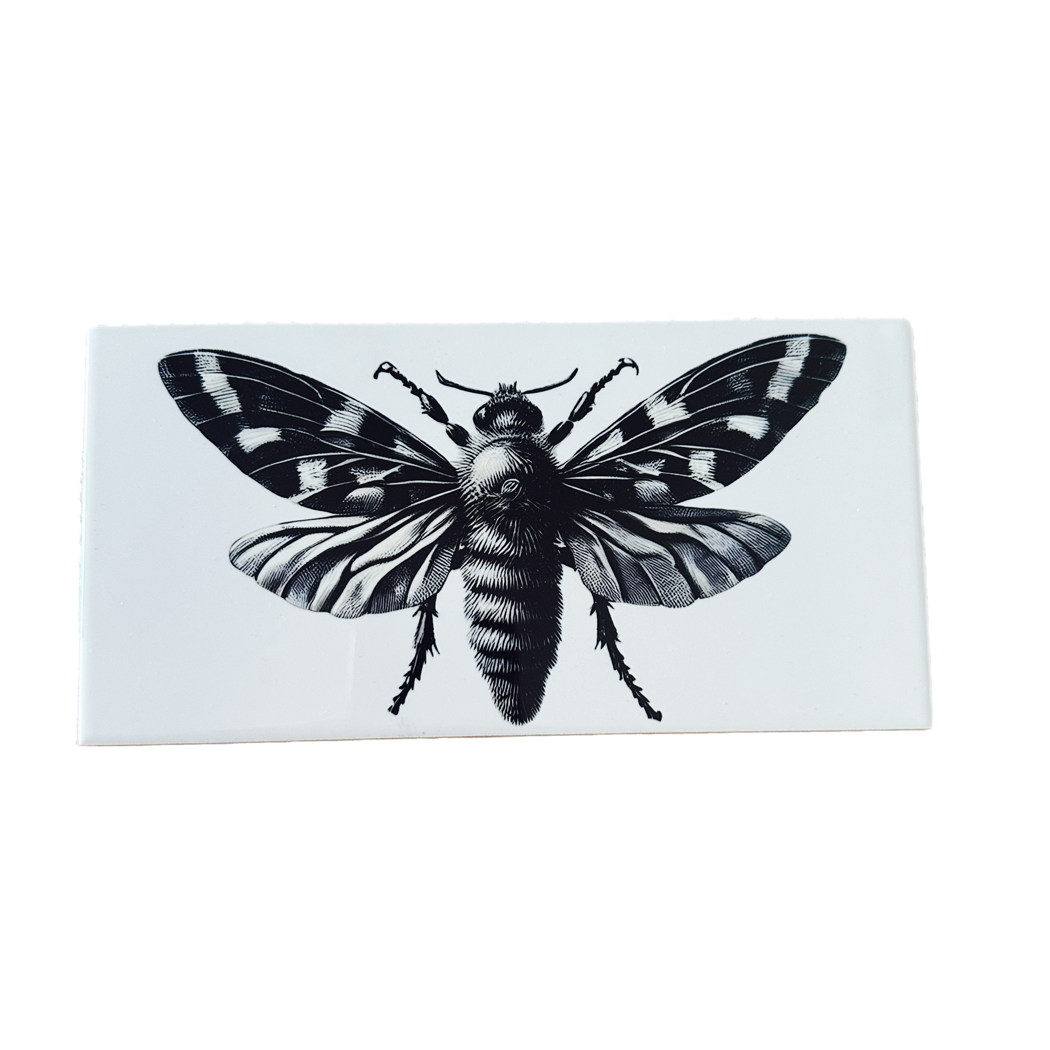Azulejo cermâmico medindo 10x20cm com ilustração Mariposa.