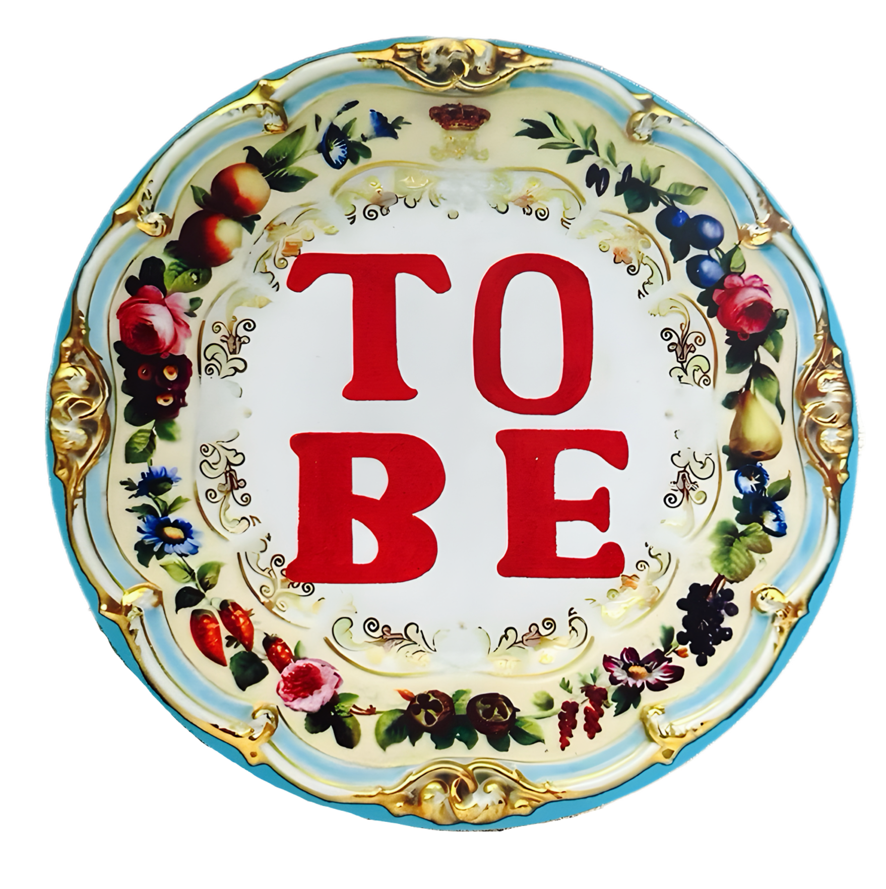 Azulejo ceramico medindo 19cm com imagem de prato antigo e Escrita TO BE
