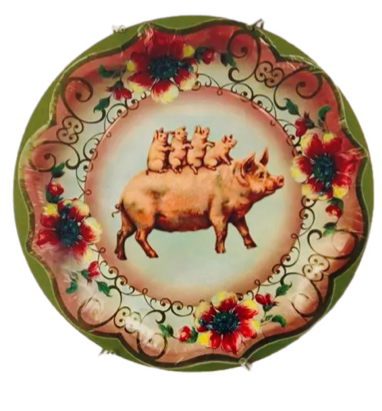 Azulejo redondo de 19cm - Ilustração de prato de papel com colagem de Porco
